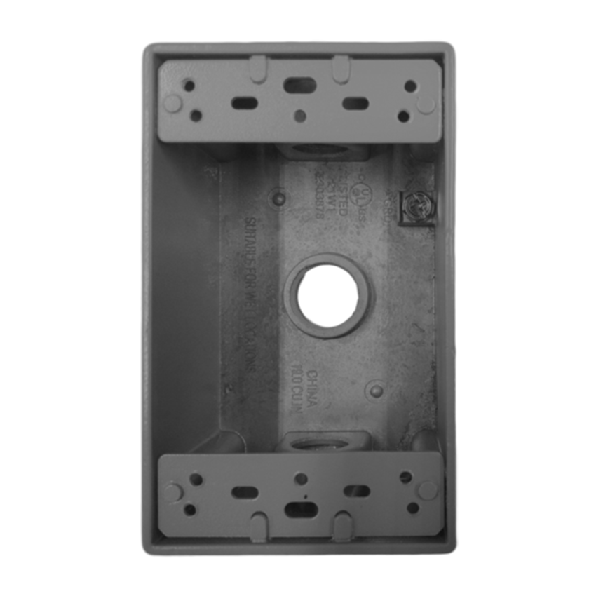 A 1-gang rectangular weatherproof (WP) box is an electrical enclosure designed to protect electrical devices and connections from the elements. It's specifically made to be used outdoors or in damp locations. A "1-gang" refers to the fact that it can hold one electrical device, like a single switch or outlet.
