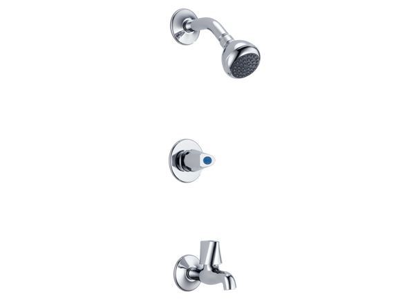 In-wall tub and shower with 1f showerhead.