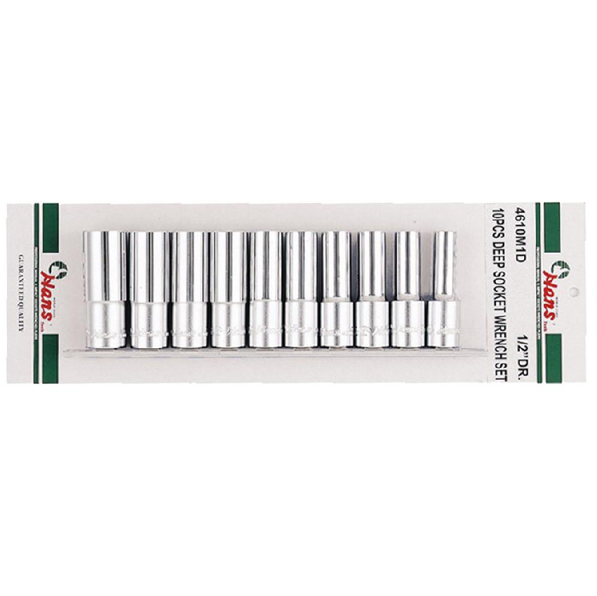 Genuine Hans Tools 4610-2A1D 1/2" drive 12 points Deep Socket Set (Silver)