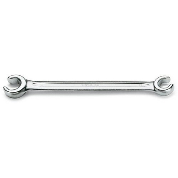 Flare nut wrenches are a type of open-ended wrench that's intended for use with hexagonal nuts and fittings, which are sometimes referred to as flare fittings. Visually, they resemble box or ratchet wrenches but with an open head instead of a closed loop.