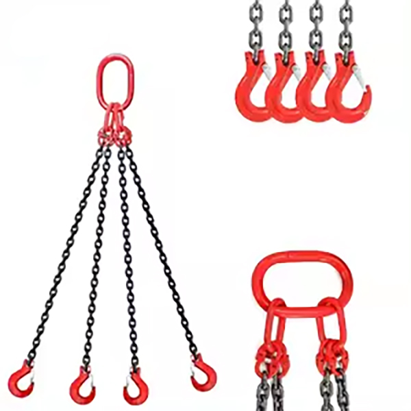 A four-leg masterlink is a lifting link assembly designed to connect to a crane hook, typically used with chain slings or other lifting means that have four legs. It acts as a central connecting point for distributing the load across the four individual legs.