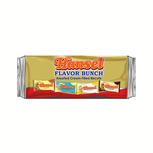 Soft cookie sandwiches with delicious cream filling. A salty-sweet, soft crunch biscuit snack with a distinct aroma that kids love! Contains different flavors of Hansel Sandwich: Mocha, Milk, Choco and Butter. Includes 10 pieces per pack so everyone in the family can Snack Hanselly Ever After!